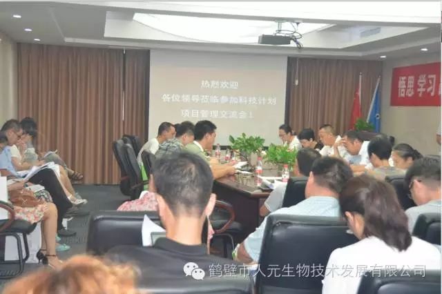 2016年8月4日下午,由鶴壁市科技局主辦、鶴壁市人元生物技術(shù)發(fā)展有限公司承辦的“鶴壁市第一期科技計劃項目管理交流會”在我司會議室召開,來自各縣區(qū)的科技局主管領(lǐng)導(dǎo)及企業(yè)代表30余人參加了此次交流會。
