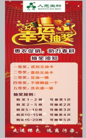 2016年12月我們鶴壁市人元生物技術(shù)發(fā)展有限公司將在浚縣、滑縣、淇縣等多地舉辦 “惠澤于農(nóng),助力春耕”的肥料有獎促銷活動。各位有需要購肥的用戶可前往我公司活動現(xiàn)場或來我公司,參與有獎促銷活動。機(jī)不可失,失不再來。