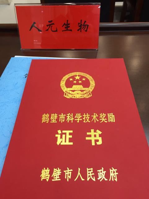 2017年3月27日,鶴壁市人民政府發(fā)布《關(guān)于2016年度鶴壁市科學(xué)技術(shù)獎勵的決定》,鶴壁市人元生物技術(shù)發(fā)展有限公司的“土壤有機質(zhì)提升關(guān)鍵技術(shù)研發(fā)與推廣”項目榮獲鶴壁市科學(xué)技術(shù)進步獎一等獎。